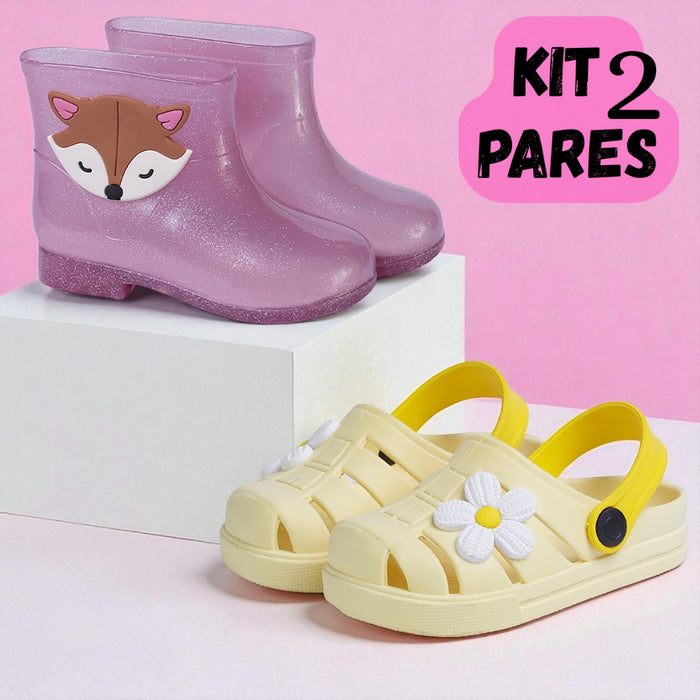 Kit 2 Pares Galocha Infantil Menina Impermeável e Sandália Papete Infantil Feminina Confort